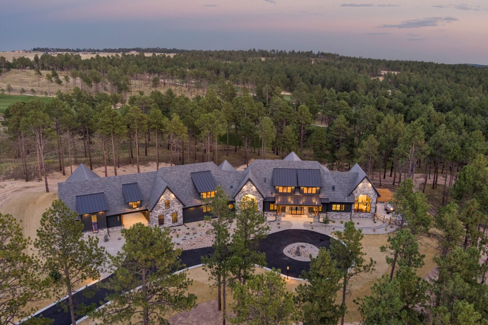 This stunning 2024 Parade of Homes is located on a spacious 3 acre lot surrounded by towering pine trees on the edge of a golf course.